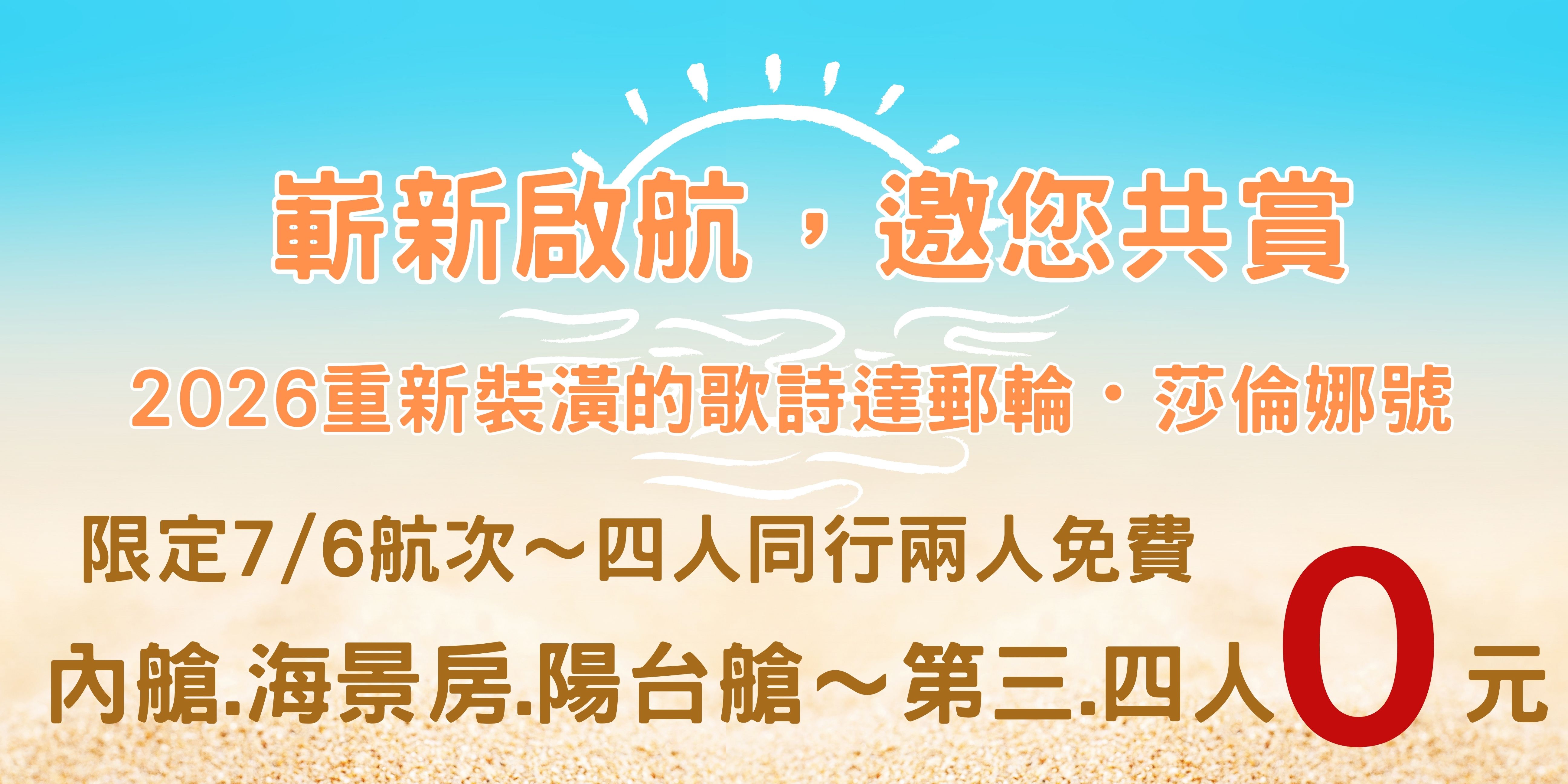 5. 僅代為訂購所指定郵輪艙房,故就訂購須知及相關權益(包含但不限於航程、停靠港通知、船上餐食、設施使用、娛樂活動及訂購取消、賠償等事宜),均由郵輪公司提供及負責。